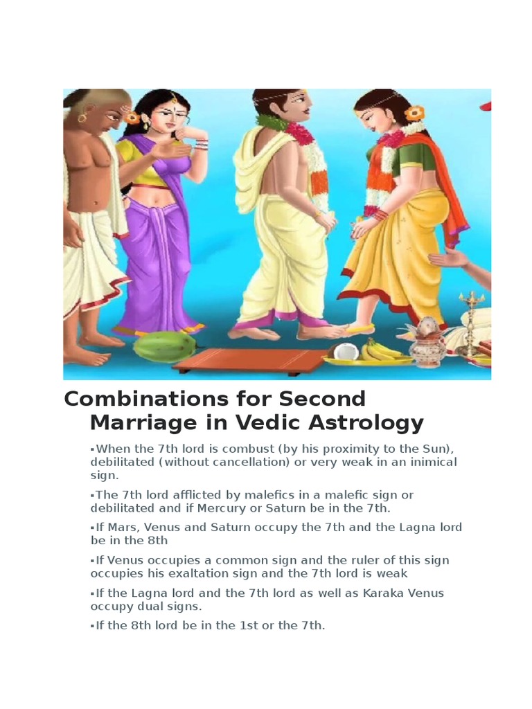 How To See Second Marriage In Astrology | fakenews.rs Second Marriage in Astrology-Prediction,timing and The second is marriage is seen from the 2nd house of Horoscope. So 8th house from 7th house i. If Second marriage is in your destiny it is better to be aware of it and do remedies so that it does not become a reality. Here are some ways to study the second marriage Yog in your Kundli or birth ...