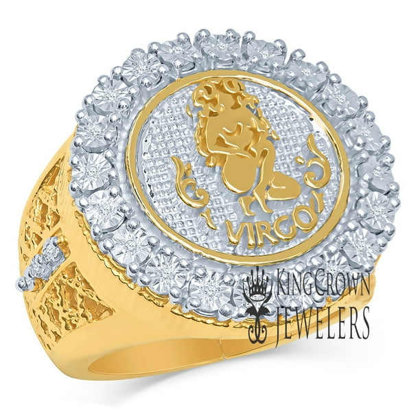 Mens Real Genuine Natural Diamonds Virgo Zodiac Sign Astrology Horoscope Ring 10K Yellow Gold Finish Pinky Band