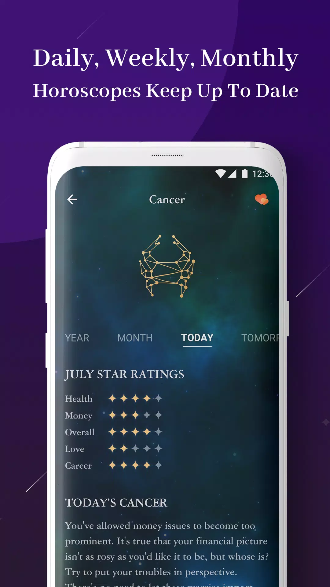 Horoscope + Zodiac Astrology on the App Store Horoscope is the most popular horoscope app. It forecasts every sign's horoscope for days, weeks and months, including love, health, fortune and career. Horoscope provides a professional stargazer and palmist for every user. No matter what part of your past, present, or future you want to love more, we're here for you. Features: