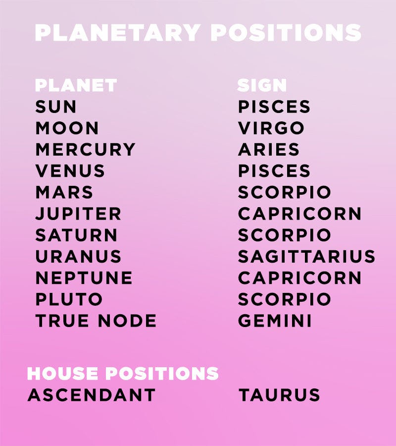 itslivb.com › 2019/08/05 › astrology-guide-sun-moonAstrology Guide: Sun, Moon & Rising Signs - Liv B. Aug 05, 2019 · The rising is UP to *something. For instance, March 14 is before 15 so you use the first chart and you are midnight exactly and before 1:25am so your rising is a Sagittarius. Interestingly enough, you and I have similar sun and rising and is why I responded :). I am Pisces sun, Capricorn moon, Sagittarius rising. Your Sun, Moon, and Rising Signs in Astrology | Tarot.com Let's say someone's Sun is in Taurus, their Moon is in Sagittarius, and they have an Aries Rising. Without knowing anything else about this chart, you can surmise the following. Sun in Taurus: This person has the energy to be practical, grounded, and sensual, and to use his or her talents to create something lasting. Free Natal Chart Report - Astrology Cafe It can also be used to generate a natal chart report. Most key positions, such as the Ascendant (rising sign), Sun, Moon, Mercury, Venus, and Mars signs and most house positions are currently interpreted with more interpretations forthcoming. Horoscopes should be read for your Sun sign and Ascendant.